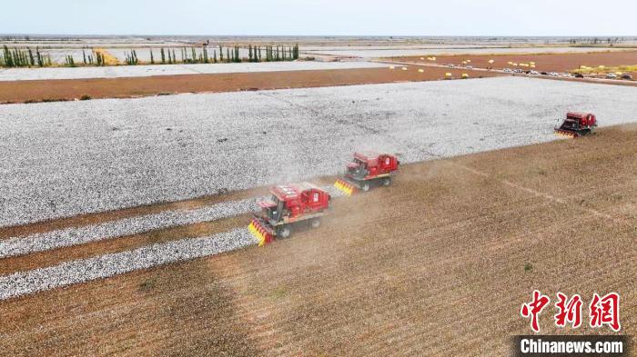 中新網(wǎng)烏魯木齊10月10日電 (趙新昌 郭海濤 張文龍)進(jìn)入10月,新疆溫宿縣50.6萬(wàn)余畝棉花開(kāi)始大面積吐絮迎來(lái)采收季,棉農(nóng)搶抓有利時(shí)機(jī)采收棉花,全程機(jī)械化助力棉花采收,在田間勾勒出一幅喜人的豐收畫(huà)卷。