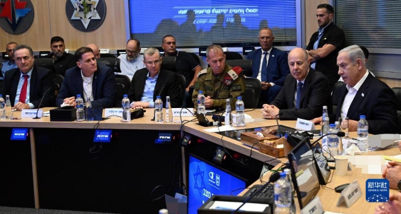 10月7日,以色列總理內(nèi)塔尼亞胡(前排右五)出席在特拉維夫舉行的安全內(nèi)閣會議。