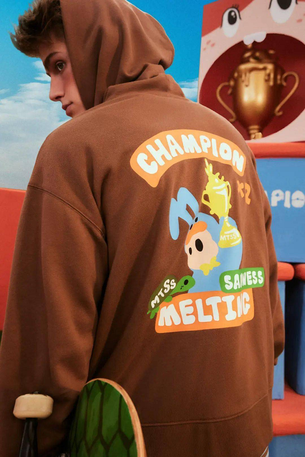 比如我們都熟知的“龜兔賽跑”,這樣一則經(jīng)典寓言流傳甚廣,但百年運動服飾品牌Champion與本土藝術(shù)家品牌Melting Sadness 卻從中發(fā)掘出了與眾不同的新元素,從而完成了一系列的創(chuàng)新與顛覆。