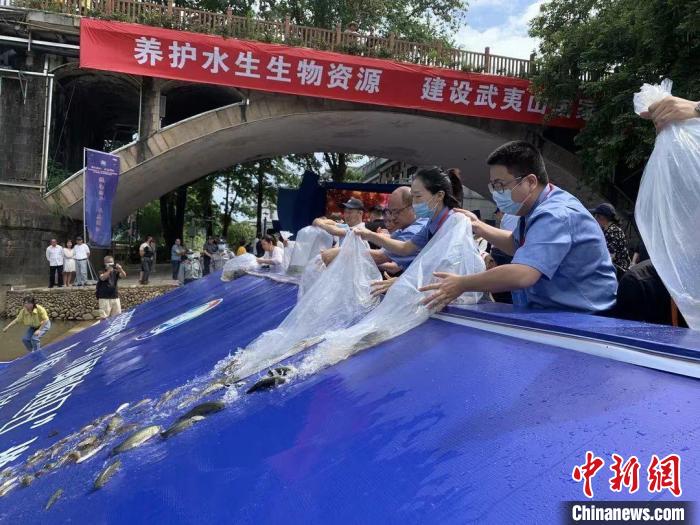.武夷山市人民檢察院在崇陽溪開展增殖放流活動。 王煥娟 攝