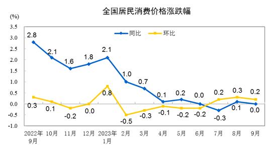 9月份,全國居民消費價格環(huán)比上漲0.2%。其中,城市上漲0.2%,農(nóng)村上漲0.3%;食品價格上漲0.3%,非食品價格上漲0.2%;消費品價格上漲0.4%,服務(wù)價格下降0.1%。