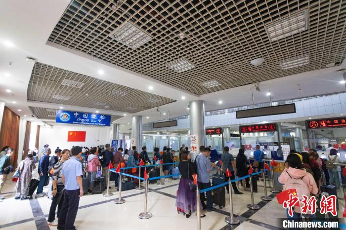 圖為旅客在磨憨口岸有序排隊(duì)候檢。衛(wèi)海林?jǐn)z