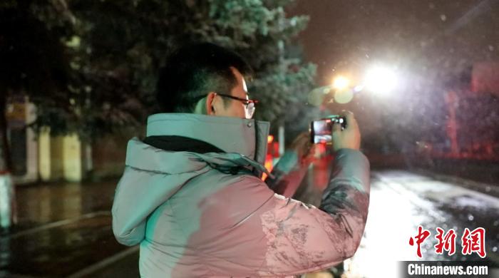 “降雪主要集中在昨晚,大片的雪花從天而降,被燈光一照像鵝毛一樣,我們?cè)谠鹤永锿媪撕芫谩?。突如其來的降雪讓湖北游客張鑫非常開心,他告訴記者,這是他一年當(dāng)中遇到的最早的一場雪?!拔以诩依镞€穿短袖呢,結(jié)果來這里就可以看雪了。對(duì)于我們南方人來說,實(shí)在太幸運(yùn)了”。張鑫說。