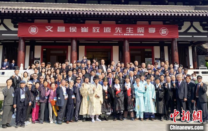 中新網(wǎng)揚州10月15日電 (記者 崔佳明)10月15日是揚州市“中韓友好交流日”。當日,揚州蜀岡唐子城之上的崔致遠紀念館舉辦崔致遠祭享活動,韓國慶州崔氏中央宗親會訪問團、韓國群山市政府代表團以及揚州崔致遠紀念館全體員工等共同紀念被譽為“中韓交往第一人”的崔致遠。