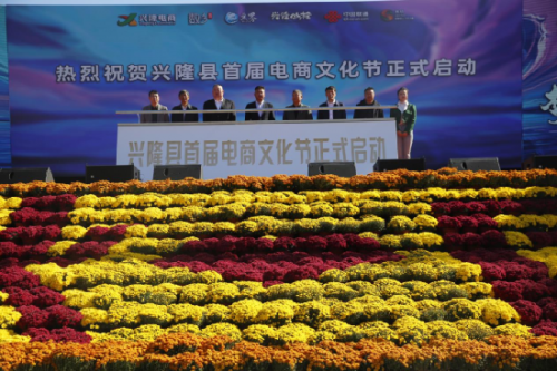 與會領(lǐng)導登臺共同啟動興隆首屆電商文化節(jié)