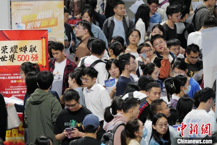 本次招聘會(huì)是共青團(tuán)服務(wù)2024屆畢業(yè)生的首場線下招聘會(huì),吸引上海市50余所高校的7000余名大學(xué)生參加?!≈行戮W(wǎng)記者殷立勤 攝