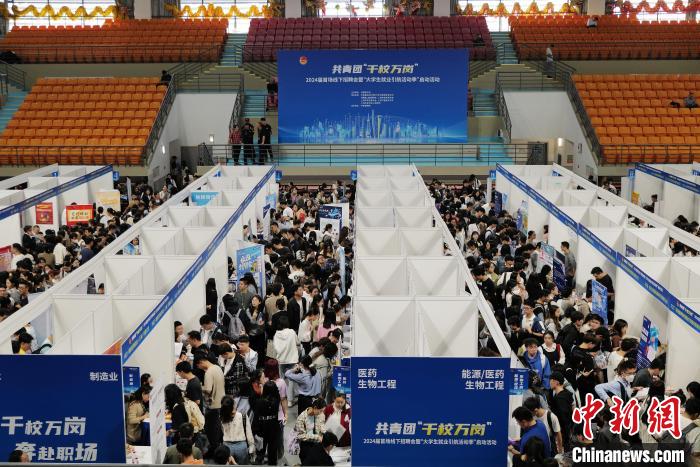 16日,共青團(tuán)“千校萬崗”2024屆首場線下招聘會(huì)在上海舉辦,共有318家企業(yè)參與,吸引上海市50余所高校的7000余名大學(xué)生參加。 中新網(wǎng)記者殷立勤 攝