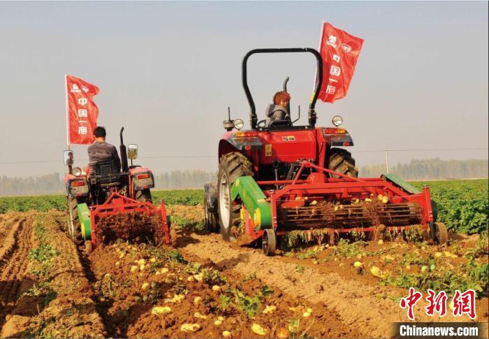 (資料圖)棗莊滕州,種植戶駕駛農機收獲馬鈴薯。滕州宣傳部供圖