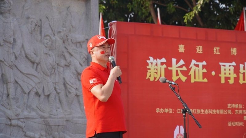 活動伊始,江西鳴揚(yáng)紅旅生態(tài)科技有限公司董事長李斌發(fā)表了熱情洋溢的致辭,他致辭中說到:長征體現(xiàn)了共產(chǎn)黨人堅(jiān)定的信念、勇氣和毅力、是我們民族歷史上一座不朽豐碑。江西鳴揚(yáng)紅旅公司的發(fā)展過程中將不斷汲取長征精神、傳承紅色基因、賡續(xù)紅色血脈,同時(shí)擘畫了鳴揚(yáng)紅旅的未來發(fā)展藍(lán)圖。隨后,東莞市征徒公益服務(wù)中心創(chuàng)始人、征徒總指揮李耀亮先生闡明了本次活動的意義,希望大家能夠在這本活動中感受紅色力量、覺醒紅色基因,堅(jiān)定“路雖遠(yuǎn)行則將至、事雖難做則必成”的信念。
