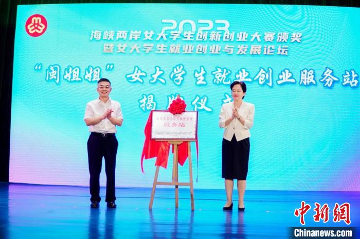 中新網(wǎng)福州10月17日電 (葉藝琳)17日,由福建省婦聯(lián)、福建省教育廳、福建省科技廳、福建省人社廳、福建商學院聯(lián)合舉辦的2023年海峽兩岸女大學生創(chuàng)新創(chuàng)業(yè)大賽頒獎暨女大學生就業(yè)創(chuàng)業(yè)與發(fā)展論壇在福州舉行。從事大學生就業(yè)創(chuàng)業(yè)研究的專家學者、兩岸大學生等400人出席,貢獻“她智慧”,展現(xiàn)“她力量”。