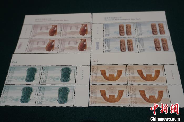 中新社河南新鄭10月17日電 (記者 韓章云 李超慶)第四屆國(guó)家考古遺址公園文化藝術(shù)周開(kāi)幕式暨《國(guó)家考古遺址公園》特種郵票首發(fā)儀式17日在河南新鄭舉行,以良渚國(guó)家考古遺址公園等4家考古遺址公園為元素的4枚《國(guó)家考古遺址公園》特種郵票正式面世。