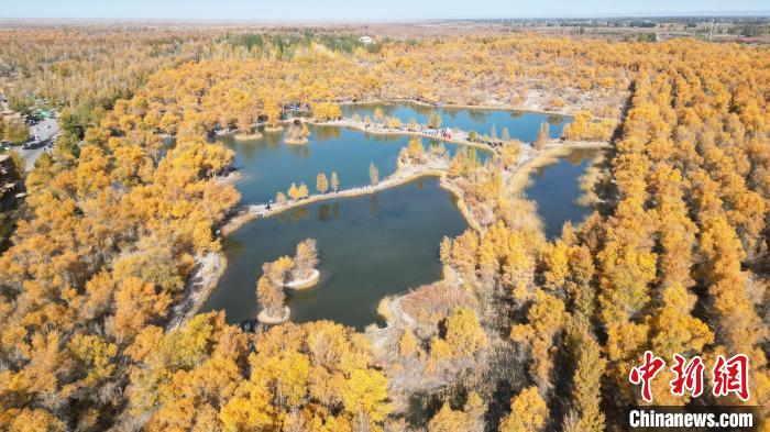 10月16日,“中新觀隴·酒泉金塔周”聯(lián)動(dòng)融合采訪走進(jìn)甘肅省酒泉市金塔縣。圖為航拍會(huì)水公園。(無人機(jī)照片) 九美旦增 攝