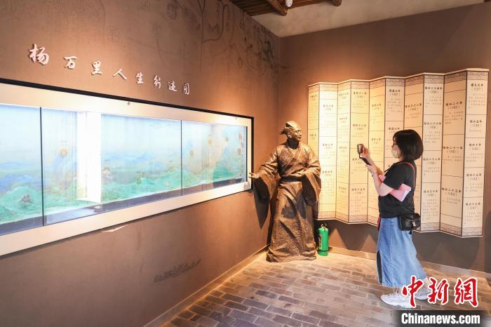 圖為臺灣資深媒體人張婷華在楊萬里紀念館內(nèi)參觀并拍照。劉力鑫 攝