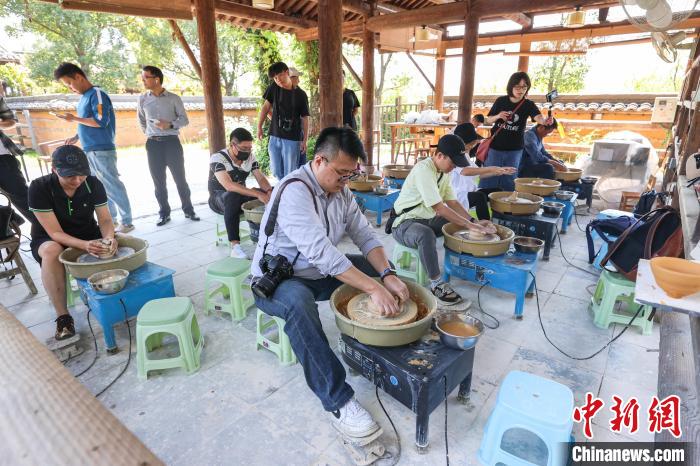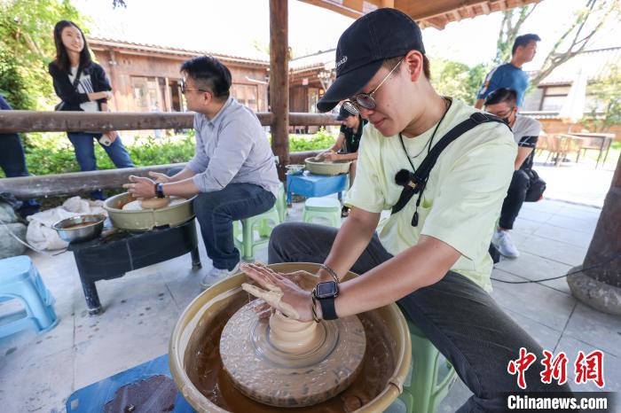10月18日,江西吉安縣,參加2023兩岸媒體江西廬陵文化行活動(dòng)的兩岸媒體人走進(jìn)吉州窯國(guó)家考古遺址公園參觀采訪,游覽了中國(guó)吉州窯博物館并體驗(yàn)了陶藝?yán)?,深度沉浸式感受陶瓷文化的魅力。吉州窯創(chuàng)燒于晚唐,距今已有1200年歷史,現(xiàn)存從晚唐至宋元時(shí)期的24座窯包是目前世界上發(fā)現(xiàn)規(guī)模最大、保存最完整的古民窯遺址群之一。