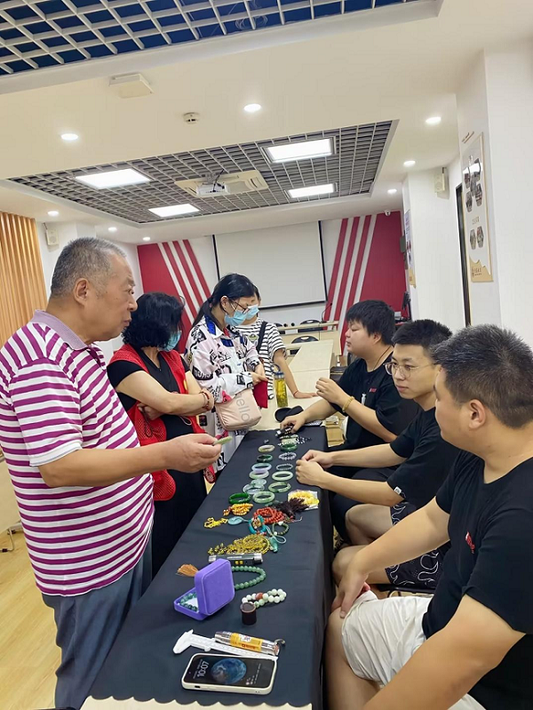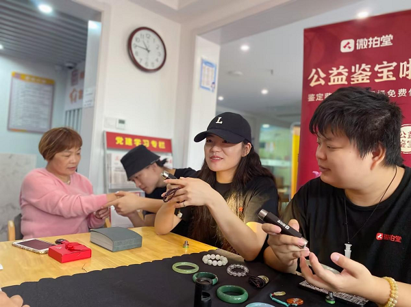 8月29日早上,雖然外面秋雨不斷,但在景曇社區(qū)的愛心驛站內(nèi),卻匯集了眾多附近熱心附近的當?shù)鼐用瘛;顒蝇F(xiàn)場,大家滿懷熱情地排開隊伍,將自己收藏或佩戴的手鐲、戒指、吊墜、擺件等各類種藏品寶貝拿在手中,等待著微拍堂鑒寶師來“掌眼”鑒別。