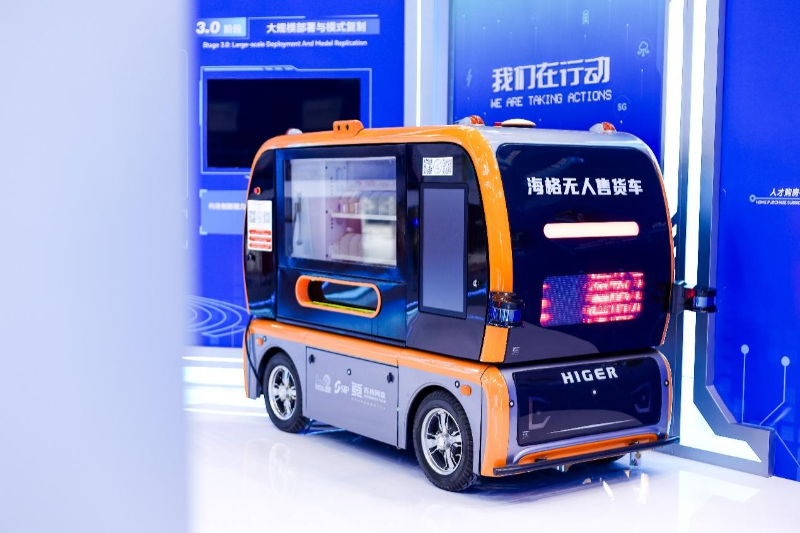 此外,蘇州金龍無人駕駛作業(yè)車也在ITS世界大會展區(qū)及現(xiàn)場演示區(qū)亮相。其中,蘇州金龍海格無人清掃車,小巧靈活,可云端任務下發(fā)、實時監(jiān)控,自動巡航完成多路段、多場景的自動清掃作業(yè);海格無人售賣車則支持掃碼定點停靠,小程序下單后呼叫售賣車自動駕駛送達站點,可滿足園區(qū)、社區(qū)等場景移動售賣需求。