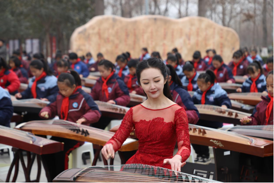 2020年留校,我并沒(méi)有選擇留在大學(xué)校園做一名專業(yè)老師,而是接受院長(zhǎng)的委派,去陜西延安的志丹縣做新時(shí)代文藝宣講師。在那里待了一年,我又到河南開(kāi)封的蘭考縣駐扎了兩年。那期間,我培訓(xùn)了當(dāng)?shù)卮笈魳?lè)教師,組建了蘭考首個(gè)“千人箏樂(lè)團(tuán)”。我希望把經(jīng)典民樂(lè)帶給更多人,豐富鄉(xiāng)村文化,用文藝的力量打通最后“一公里”。