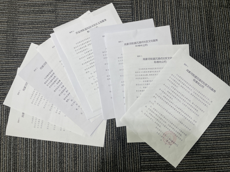 啟動儀式上,試點成員單位代表宣讀了《肖家河街道沉浸式社區(qū)文化服務(wù)標(biāo)準(zhǔn)化公約》,試點各成員單位簽署了標(biāo)準(zhǔn)化公約,承諾嚴(yán)格履職,共同推進(jìn)沉浸式社區(qū)文化服務(wù)標(biāo)準(zhǔn)化建設(shè)。