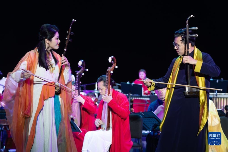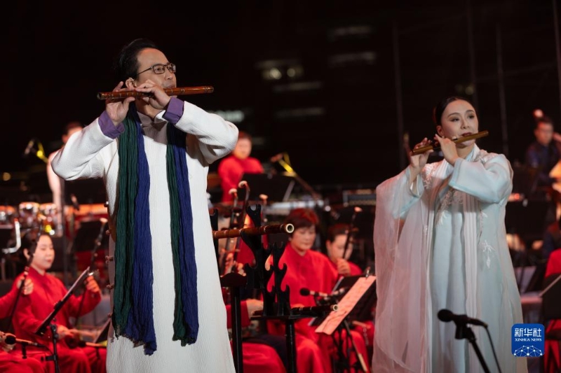 當(dāng)日,作為第二十二屆中國上海國際藝術(shù)節(jié)“藝術(shù)天空”系列的首場活動,上海民族樂團(tuán)原創(chuàng)音樂會《國樂詠中華》在上海閔行文化公園奏響。