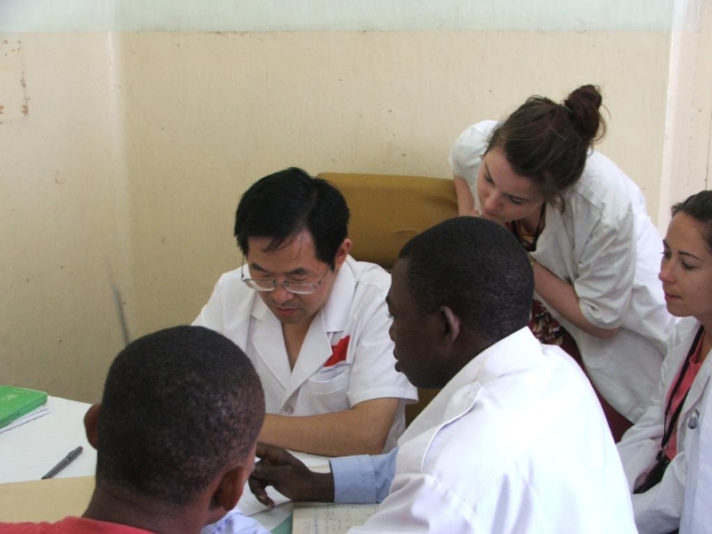 2011年7月22日,在坦桑尼亞桑給巴爾納茲莫加醫(yī)院外科門診,中國(guó)第24批援桑給巴爾醫(yī)療隊(duì)隊(duì)長(zhǎng)盧建林為當(dāng)?shù)鼗颊咴\治并帶教實(shí)習(xí)生。新華社發(fā)(國(guó)家衛(wèi)生健康委供圖)