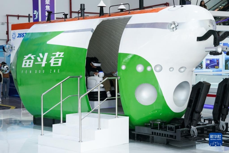 10月21日,一名小朋友在第十一屆中國(蕪湖)科普產(chǎn)品博覽交易會上體驗(yàn)載人潛水器模擬座艙。