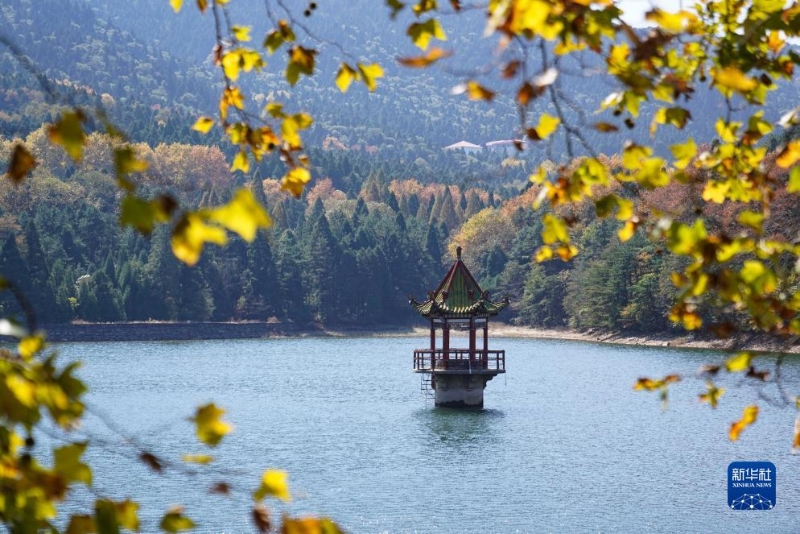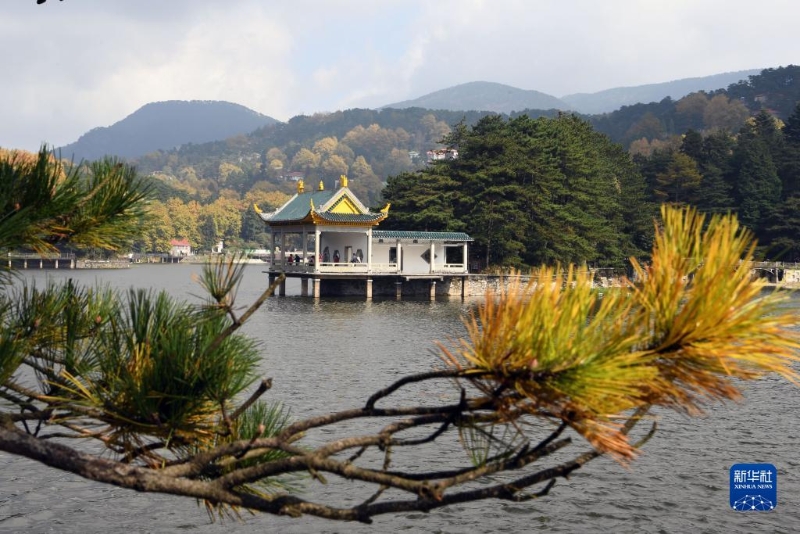 10月20日拍攝的廬山如琴湖秋景(無(wú)人機(jī)照片)。