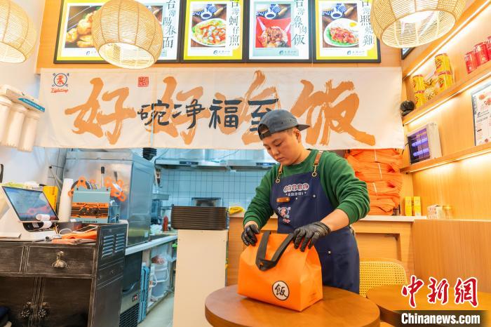 10月22日,臺灣餐飲人葉韋廷在重慶店內將美食打包?!≈行律缬浾?鐘旖 攝