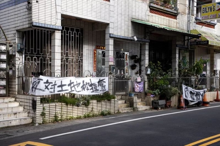 圖為遭征收區(qū)域的桃園居民不滿被征地,拉起布條抗?fàn)帯D自《聯(lián)合報(bào)》