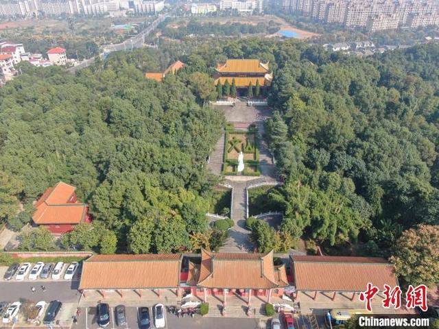 圖為航拍江西吉安縣的文天祥紀(jì)念館,主體建筑是一組中軸對稱的仿古建筑群,四周綠樹環(huán)繞。劉力鑫 攝