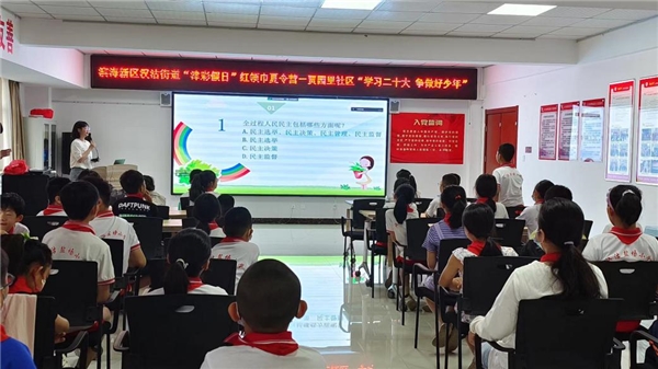 天津外國語大學(xué)國際商學(xué)院“紅色筑夢 青春微語”實踐路隊,以學(xué)習(xí)習(xí)近平新時代中國特色社會主義思想為主要內(nèi)容,聚焦習(xí)近平新時代中國特色社會主義思想中的最新成果、熱點內(nèi)容,在這個暑假,深入天津市濱海新區(qū)漢沽街道,開展生動的理論宣講,讓黨的創(chuàng)新理論“走入尋常百姓家”。