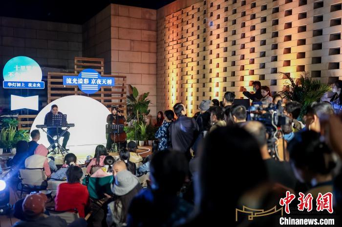 2023“南中軸·夜天橋”藝術(shù)推廣活動現(xiàn)場的室外小型音樂會?!√鞓蛩囆g(shù)中心供圖