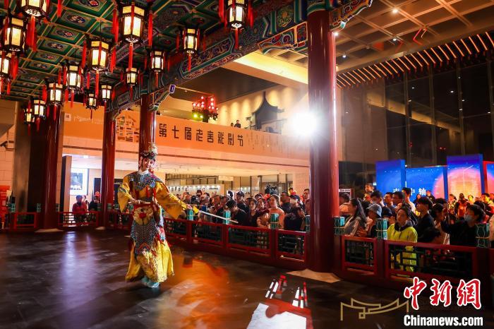 2023“南中軸·夜天橋”藝術(shù)推廣活動現(xiàn)場的京劇表演?!√鞓蛩囆g(shù)中心供圖