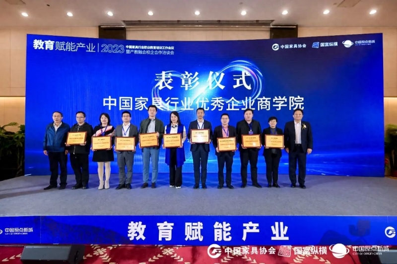 由北京國富縱橫、黑龍江林業(yè)職業(yè)技術學院、東北林業(yè)大學三家牽頭,集院校、企業(yè)、商業(yè)于一體的大家居行業(yè)校企共融共建組織在“2023年度中國家具行業(yè)教育培訓工作大會”上正式成立!匯聚產業(yè)力量,推動產教深度融合,實現校企“雙向奔赴”!