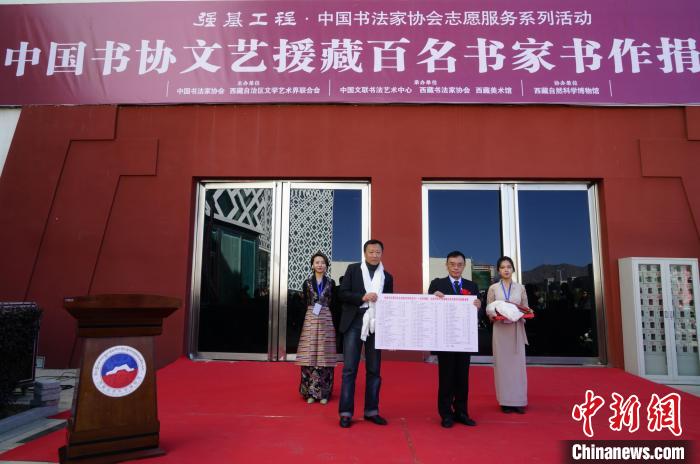 中新網(wǎng)拉薩10月22日電 (李林 澤塔雍措)10月22日,中國書法家協(xié)會文藝援藏百名書家書作捐贈展開幕式在西藏自然科學(xué)博物館舉行。此次展覽共展出91幅書法作品,全部來自中國書協(xié)組織全國書法名家為西藏美術(shù)館的捐贈。