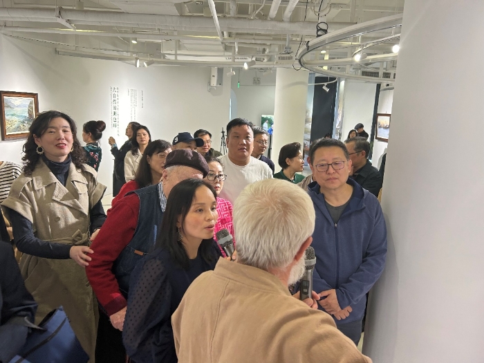 瓦倫丁教授為觀眾講解展覽作品(文華閣書畫院供圖)