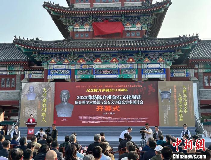 中新網(wǎng)濰坊10月23日電 (李明芮)適逢陳介祺誕辰210周年,2023濰坊陳介祺金石文化周10月22日在“金石之都”山東濰坊開幕。本屆金石文化周開幕式線上線下同步舉行,在日本、韓國(guó)、馬來西亞、英國(guó)等國(guó)家和地區(qū)的金石文化研究會(huì)設(shè)立9個(gè)海外分會(huì)場(chǎng)。海內(nèi)外金石篆刻界人士共襄金石藝術(shù)盛宴,共議金石文化發(fā)展。