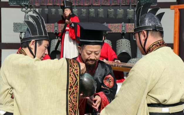中新網(wǎng)山東鄒城10月23日電 (李明芮 王崇印) 鐘磬齊鳴,八音迭奏。10月23日上午9時(shí)50分,在孟子故里山東鄒城,隨著“啟扉”聲起,初獻(xiàn)官、亞獻(xiàn)官、終獻(xiàn)官等人員身著祭祀古裝,在文舞生和武舞生的引領(lǐng)下,肅穆莊重地步入亞圣殿前,正式開啟癸卯年“九九重陽節(jié)”紀(jì)念伏羲、女媧活動(dòng)。
