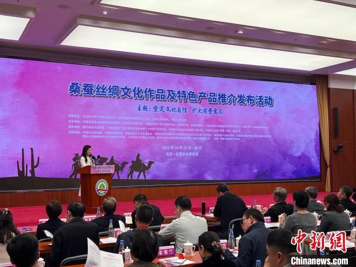 中新網(wǎng)北京10月23日電 (記者 潘旭臨)由中國品牌建設(shè)絲綢桑蠶品牌集群、中國優(yōu)質(zhì)農(nóng)產(chǎn)品開發(fā)服務(wù)協(xié)會、中國蠶學(xué)會、中國絲綢協(xié)會等單位共同主辦的桑蠶絲綢文化作品及特色產(chǎn)品推介發(fā)布活動(dòng)22日在北京的全國農(nóng)業(yè)展覽館舉行。
