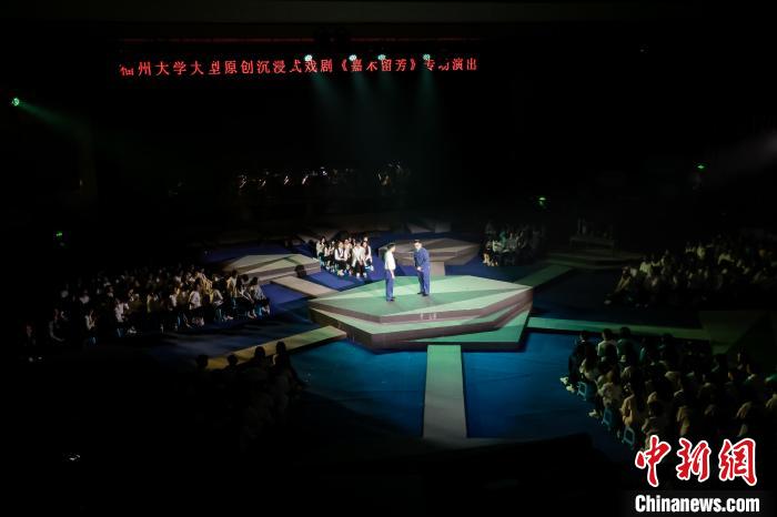 活動現(xiàn)場,福州大學(xué)學(xué)生帶來的大型原創(chuàng)沉浸式戲劇《嘉木流芳》專場演出亮相。