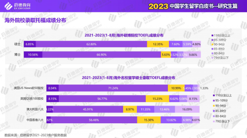 海外名校研究生錄取標(biāo)準(zhǔn)各異。2023年10月14日,啟德教育在北京發(fā)布《2023中國學(xué)生留學(xué)白皮書-研究生篇》,啟德留學(xué)調(diào)研數(shù)據(jù)顯示,“語言成績達不到目標(biāo)院校要求”(62.6%)、“GPA達不到目標(biāo)院校要求”(48.4%)、“國內(nèi)院校背景不夠突出”(39.8%)是學(xué)生在留學(xué)申請期最擔(dān)心的三大問題,“綜合排名”、“教學(xué)質(zhì)量”、“國內(nèi)知名度”是學(xué)生選擇留學(xué)院校的主要參考因素。2021-2023啟德留學(xué)客戶服務(wù)數(shù)據(jù)顯示,雅思成績方面,海外院校的博士錄取學(xué)生,雅思成績在6.5分及以上的占比(66.52%)略高于碩士錄取學(xué)生(56.34%)。美國US News前50院校與法國高商名校的碩士錄取學(xué)生,雅思6.5分及以上的占比達到了九成以上。托福成績方面,海外院校的博士錄取學(xué)生,托福成績在95分及以上的占比(77.46%)略高于碩士錄取學(xué)生(69.65%)。美國US News前50院校的近八成碩士錄取學(xué)生,托福成績在95分及以上。