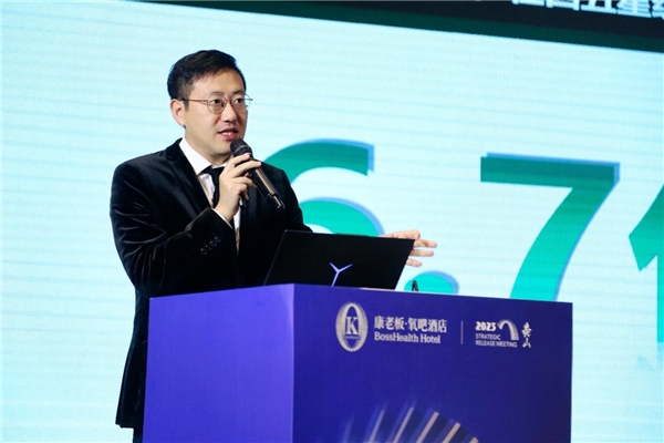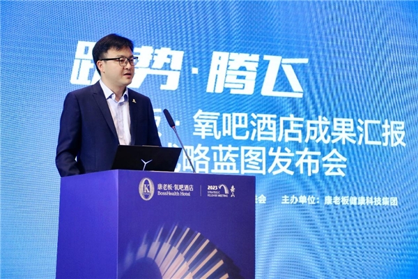 會(huì)上,康老板健康科技集團(tuán)聯(lián)席總裁兼康老板·氧吧酒店CEO 張鶴分享了康老板·氧吧酒店的一年多來(lái)的發(fā)展成果。