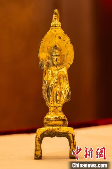 中國駐澳大利亞大使館舉行儀式,接收澳方向我國返還共4件流失文物藝術(shù)品與1件古生物化石。圖為隋晚期至唐銅鎏金佛立像。國家文物局供圖