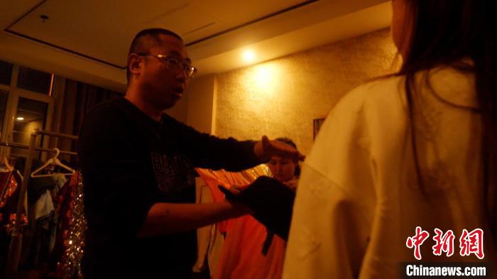 天還沒亮,王路沙就在和服裝組工作人員溝通演員服裝問題。(趙廣越 攝)