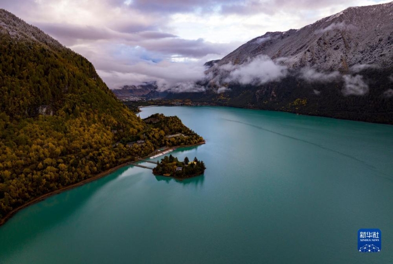 這是在林芝工布江達(dá)縣拍攝的巴松錯(無人機(jī)照片,10月28日攝)。
