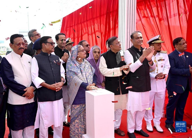 10月28日,在孟加拉國吉大港市,孟加拉國總理哈西娜(前排左三)出席卡納普里河底隧道通車儀式。