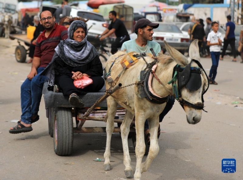10月29日,因缺乏燃料,人們在加沙地帶南部城市汗尤尼斯使用驢車出行。
