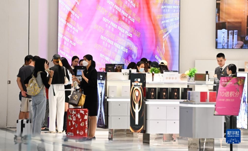 消費(fèi)者在位于海南省??谑械暮?趪H免稅城內(nèi)購物(10月28日攝)。