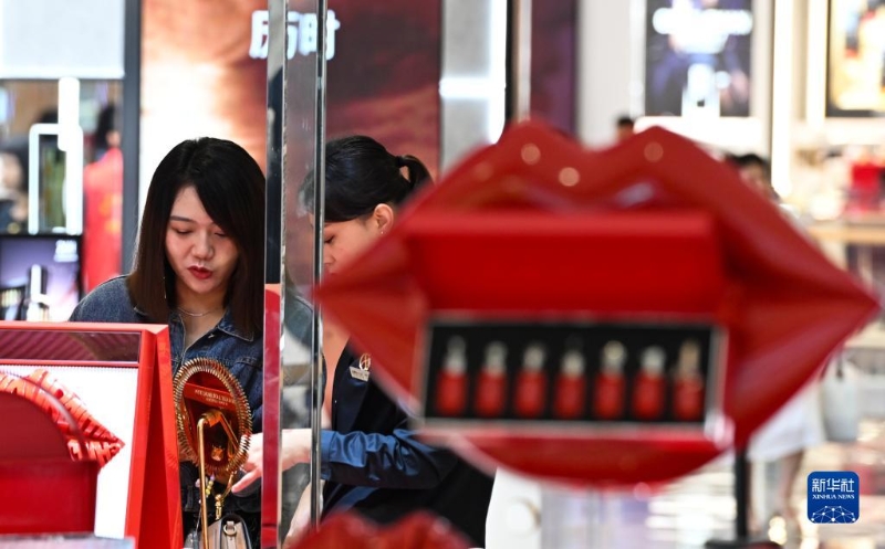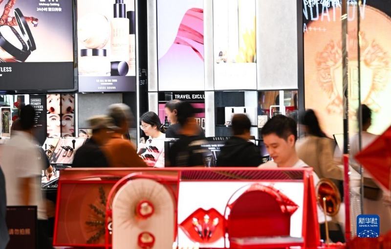 消費(fèi)者在位于海南省海口市的??趪H免稅城內(nèi)購物(10月28日攝)。