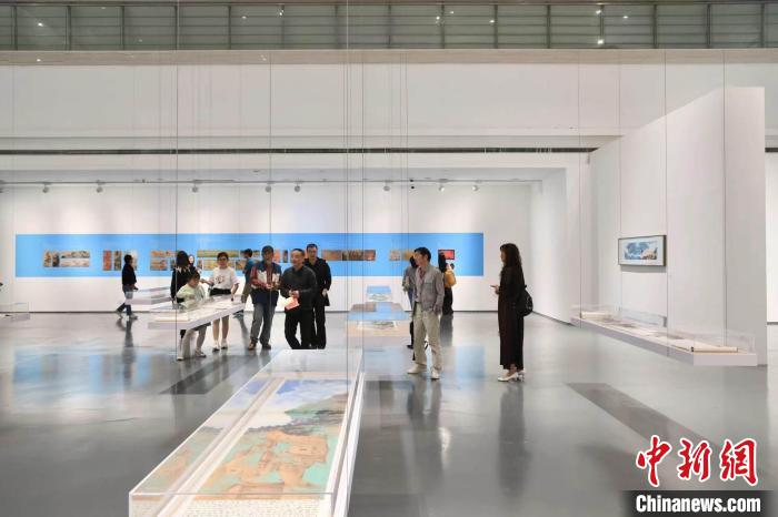 中新網(wǎng)蘇州10月30日電 “景·色”——2023當(dāng)代青綠山水畫學(xué)術(shù)邀請展28日在蘇州美術(shù)館開幕。展覽由冊頁展和手卷展兩部分組成,共展出99位畫家的101件(組)作品,其中冊頁作品42幅,手卷作品59幅。