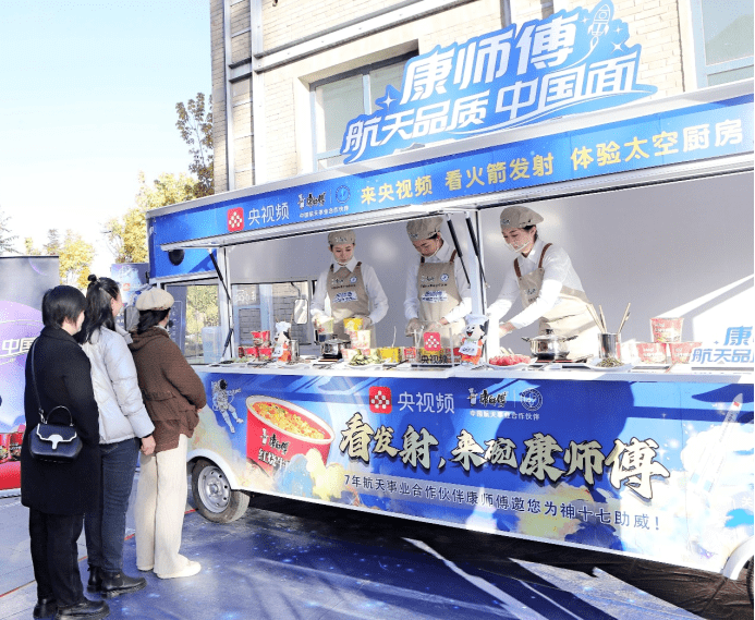 發(fā)射當(dāng)天,還有一道靚麗的風(fēng)景線閃亮酒泉,一輛“神十七”大巴車來到酒泉1969文化藝術(shù)創(chuàng)意園,邀請市民“看發(fā)射,來碗康師傅”,為中國航天加油助威。市民們不僅可以在太空廚房吃到航天品質(zhì)中國面,暢玩康師傅精心準(zhǔn)備的互動游戲,而且可以給神舟十七發(fā)射送上殷切祝福,更為重要的是還可與發(fā)射現(xiàn)場直播連線,一起為中國航天加油助威!